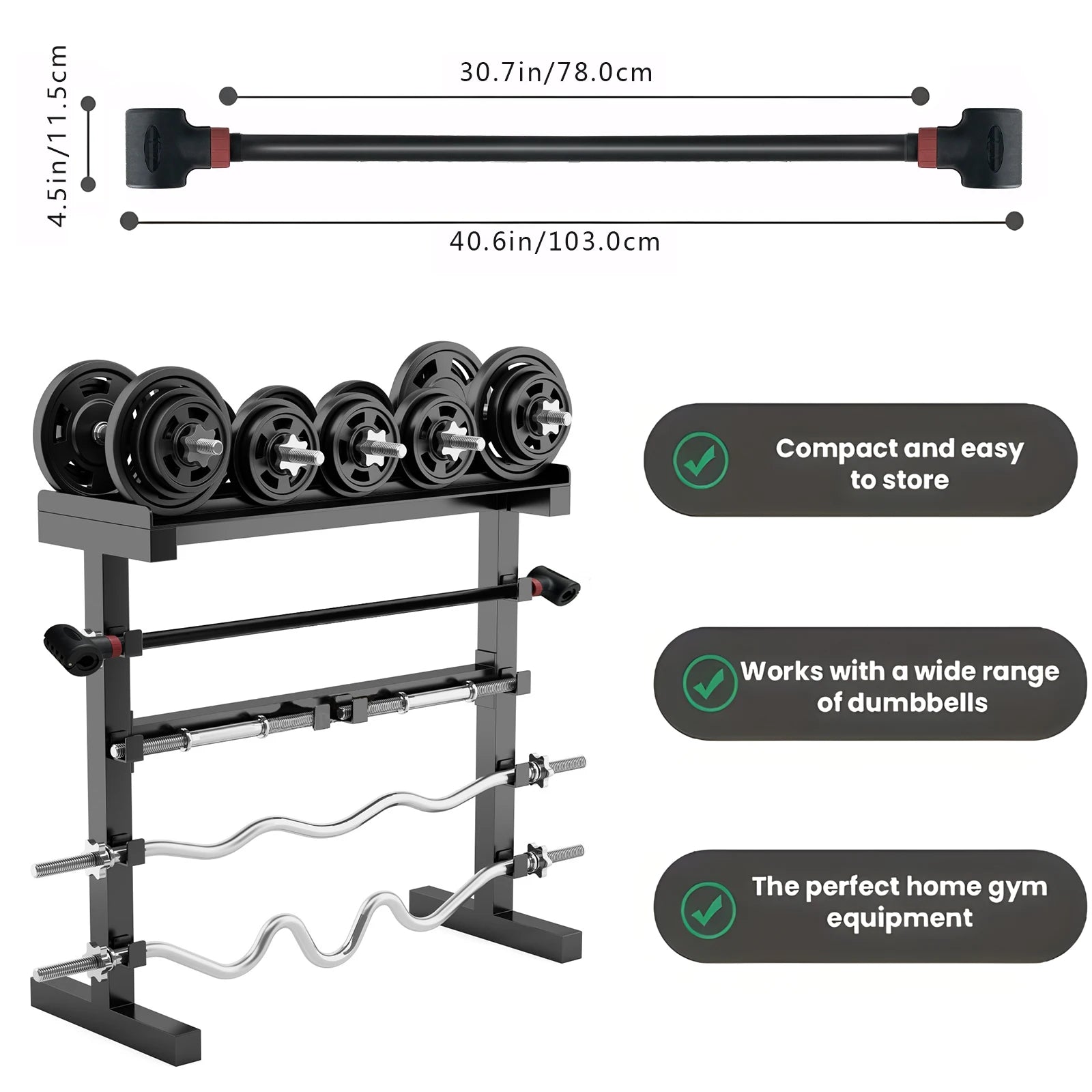DUMBBELL TO BARBELL CONVERTER: With the adjustable steel barbell bar, transform your adjustable dumbbell set into a heavy-duty weight bar for weights lifting and strength training bars at home.